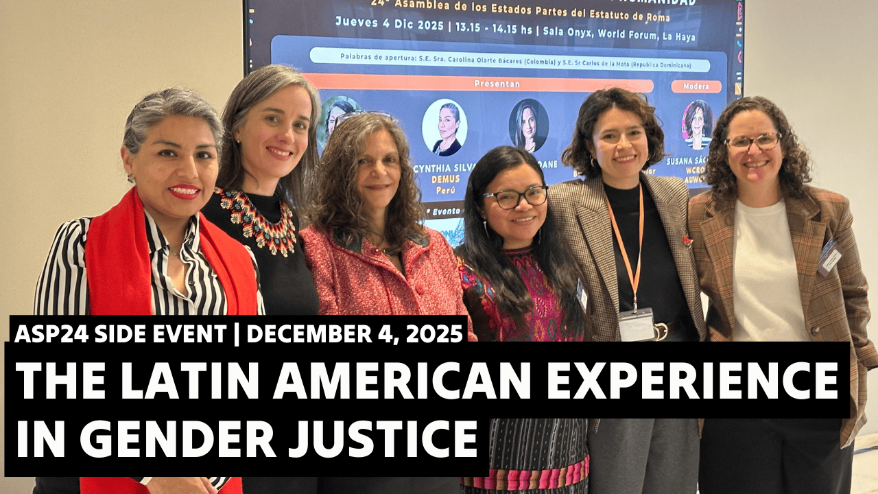 El 4 de diciembre de 2025, en el marco de la Asamblea de Estados Partes del Estatuto de Roma de la Corte Penal Internacional #ASP 24 en La Haya, se llevó a cabo el evento “La experiencia latinoamericana en justicia de género y su aporte a la Iniciativa de Tratado sobre Crímenes de Lesa Humanidad”, un espacio de diálogo entre expertas en justicia de género y litigio estratégico de Colombia, Guatemala, Perú y Argentina.