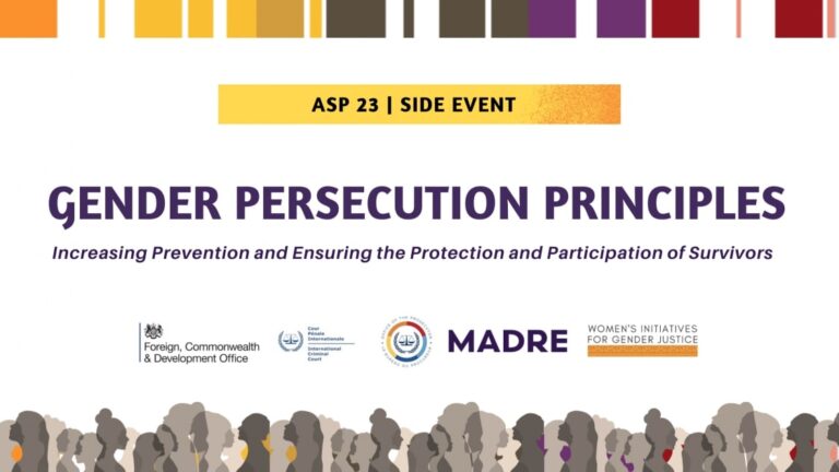 - Co-sponsoring side event at the 2024 Assembly of States Parties (ASP) on Gender Persecution Principles.