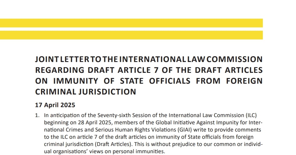 Women’s Initiatives for Gender Justice has joined eight partner organisations in submitting a joint letter to the International Law Commission (ILC), urging critical improvements to draft article 7 of the Draft Articles on the Immunity of State Officials from Foreign Criminal Jurisdiction.